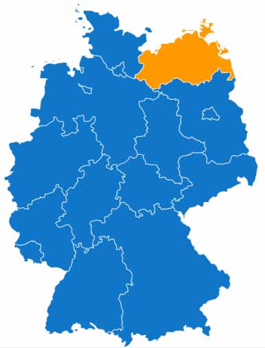 | MV |  |  | Мекленбург-Передняя Померания Land Mecklenburg-Vorpommern | 3 | 23 190,76 (6) | Шверин Schwerin | Мекленбург-Передняя Померания на карте