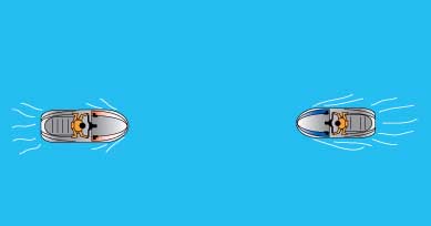 - Так, чтобы расстояние между ними было не менее трех длин корпуса большего судна